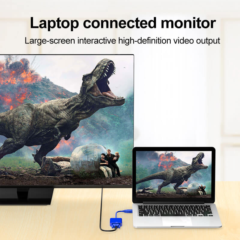 The USB 3.0 to VGA adapter functions like an external graphics card, ensuring flawless high-definition video transmission to your monitor or projector.